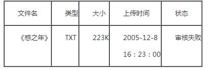 根据公证书粘连的网页打印件及工作记录记载,http:// www.splife.com/scsoft.asp.stype=cxn&k=惑之年页面为在www.splife.com网站上搜索“惑之年”所得,该页面积在:“惑之年[电子书→现代小说] 运行环境:txt 授权方式:共享版 更新时间2005-12-9 软件评级☆☆☆☆ 人气 240 文件大小 233K”。点击该页面上的“惑之年”,进入网页http://www.splife.com/soft/13136.htm,该页面显示:“